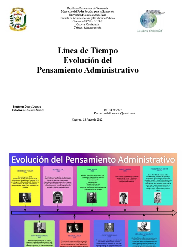 Linea de Tiempo Evolución Del Pensamiento Administrativo PDF