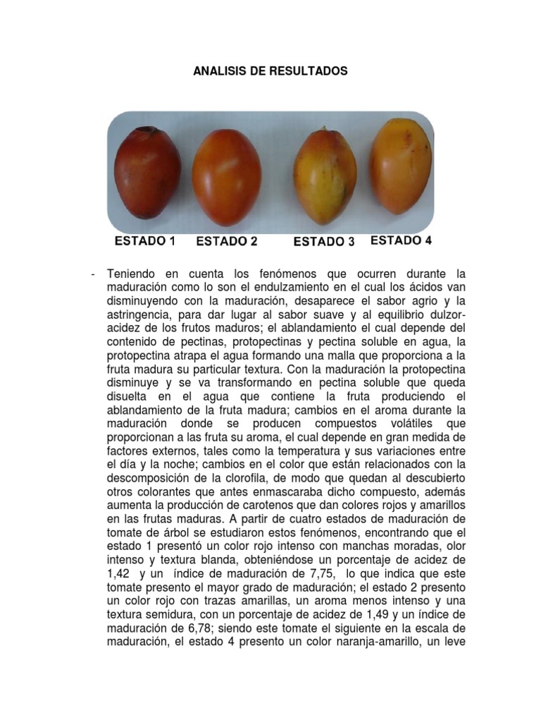 Análisis de los cambios físicos, químicos y organolépticos durante la maduración del tomate de