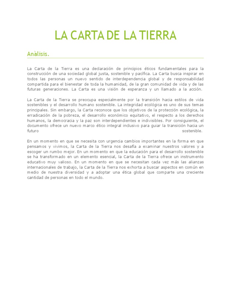 Carta A La Tierra Origen PDF Desarrollo sostenible Sustentabilidad