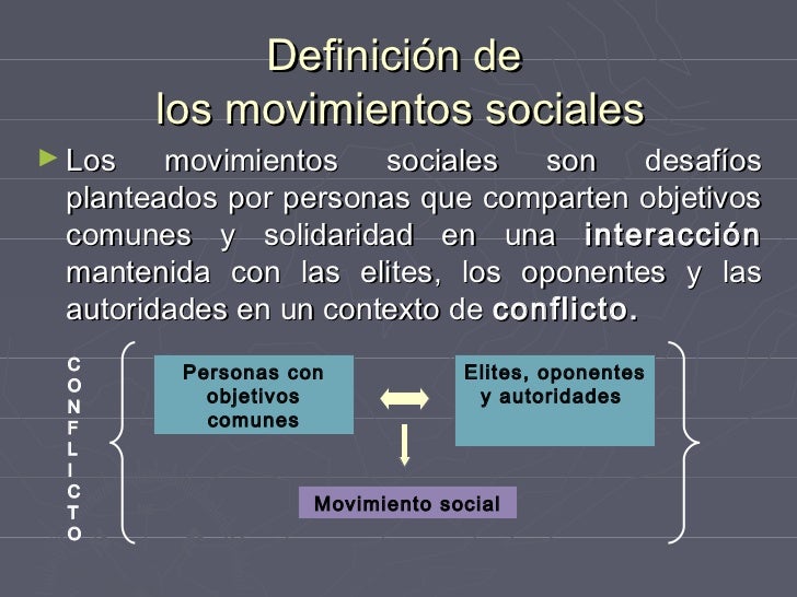 Definición. En su idea más general, movimiento social es definido como "una forma de acción colectiva no efímera, en la cual un grupo más o menos organizado recurre a acciones extra institucionales a fin de promover o impedir ciertos cambios". [3] Los politólogos Cas Mudde y Cristóbal Rovira Kaltwasser definen los movimientos sociales como «redes informales (o "redes de redes") que.