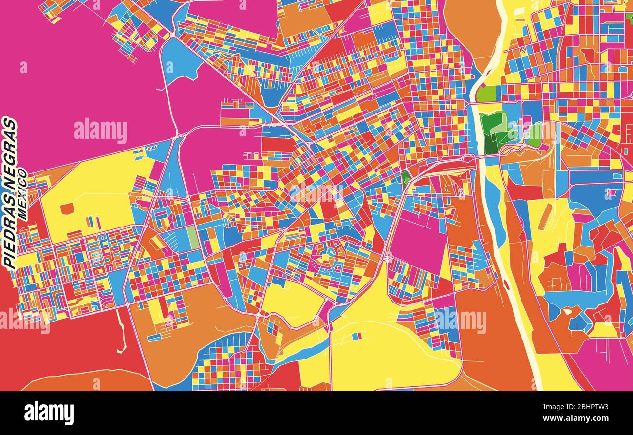 Mapa vectorial colorido de Piedras Negras, Coahuila, México. Plantilla Art Map para autoimprimir