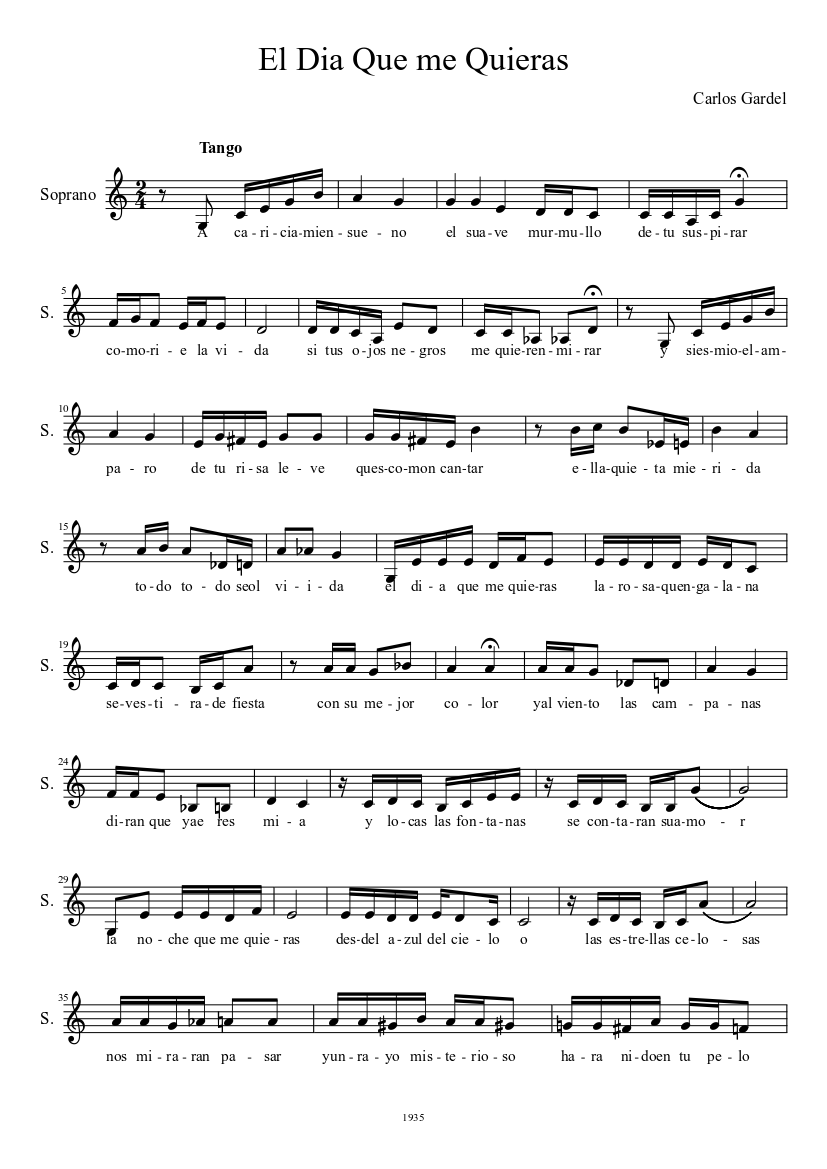 Carlos Gardel El Dia Que Me Quieras Sheet music for Voice