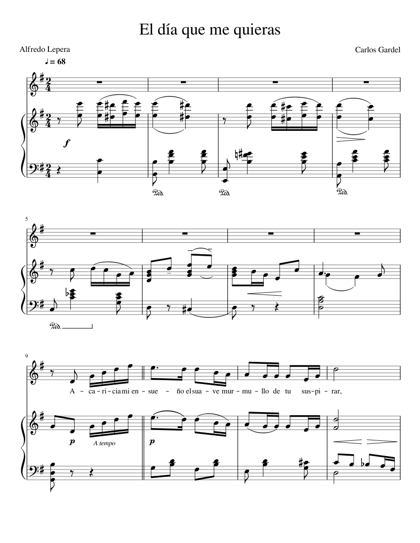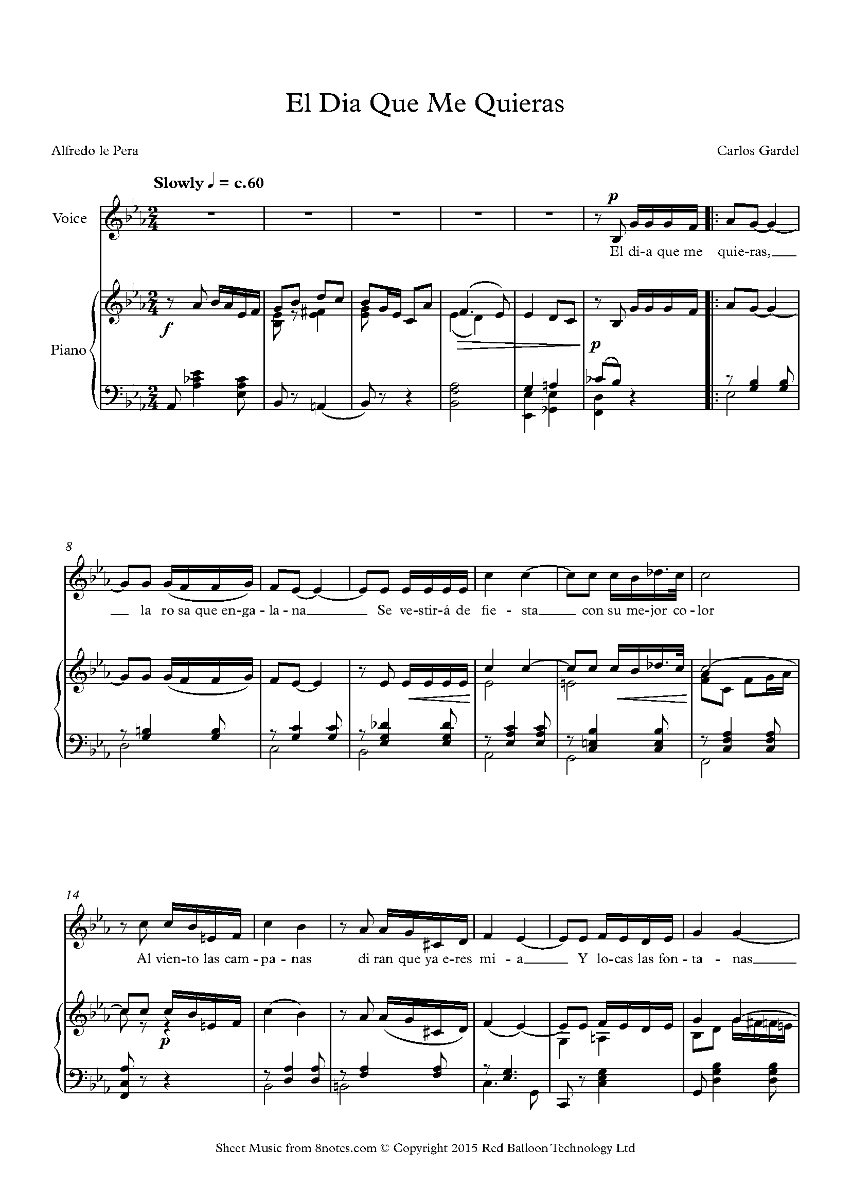 El día que me quierasCarlos Gardel y Alfredo Lepera sheet music for Piano, Voice download free