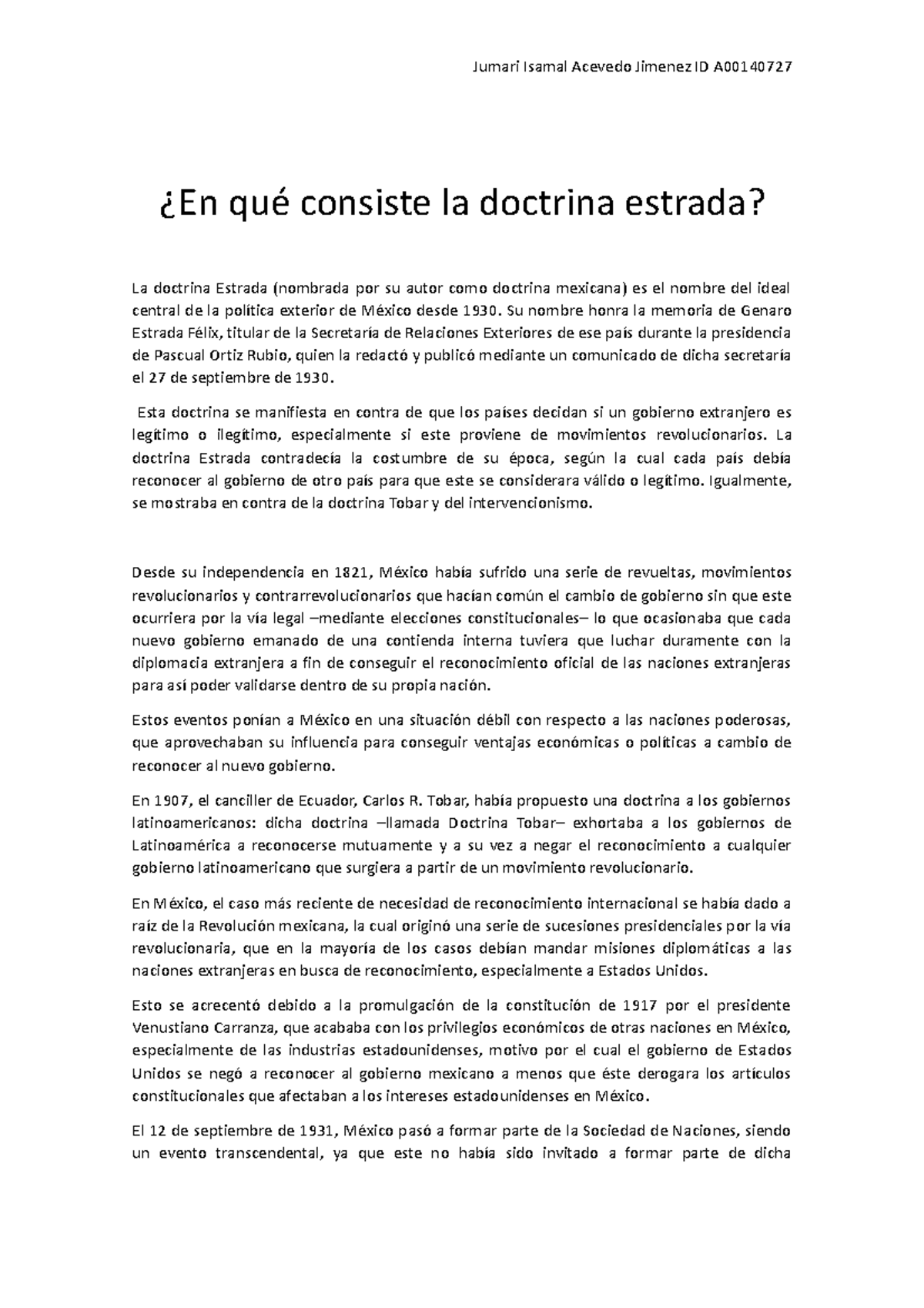 En qué consiste la doctrina estrada Jumari Isamal Acevedo Jimenez ID A ¿En qué consiste la