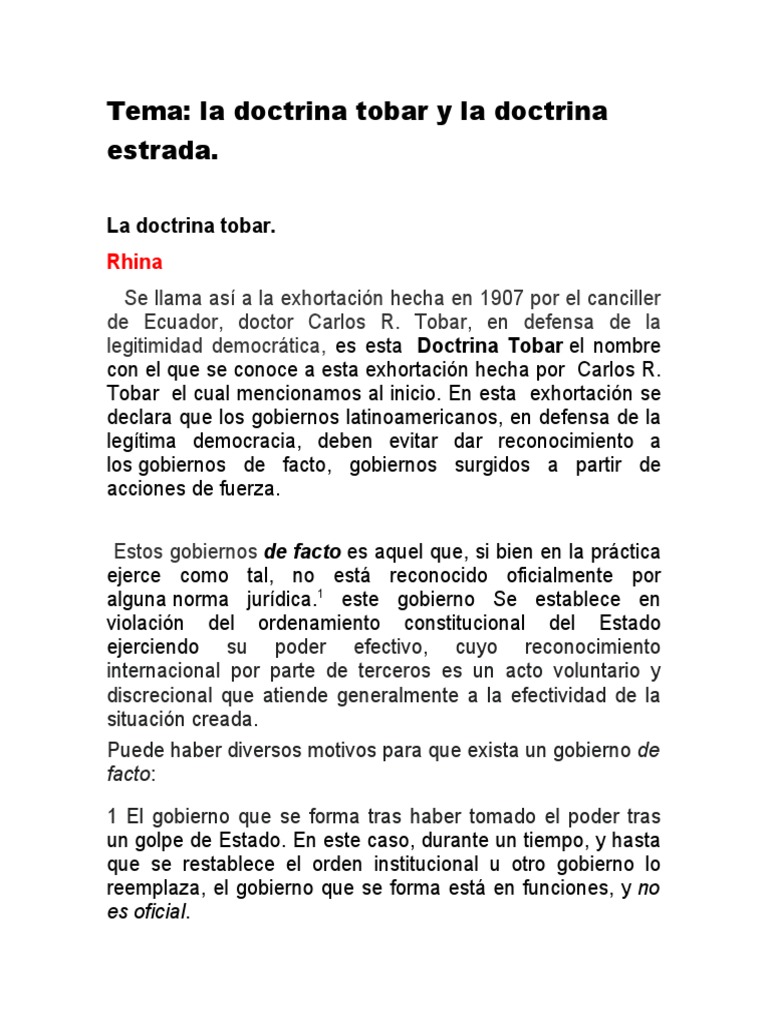 LA DOCTRINA TOBAR Y LA DOCTRINA ESTRADA Derecho Internacional Publico PDF Relaciones