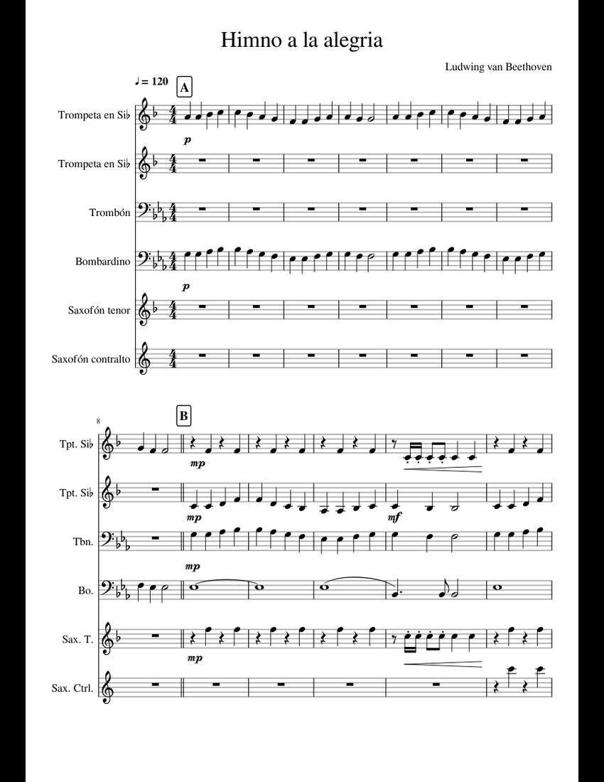 Himno a la alegria Partitura para Banda sheet music for Trumpet, Trombone, Tuba, Tenor