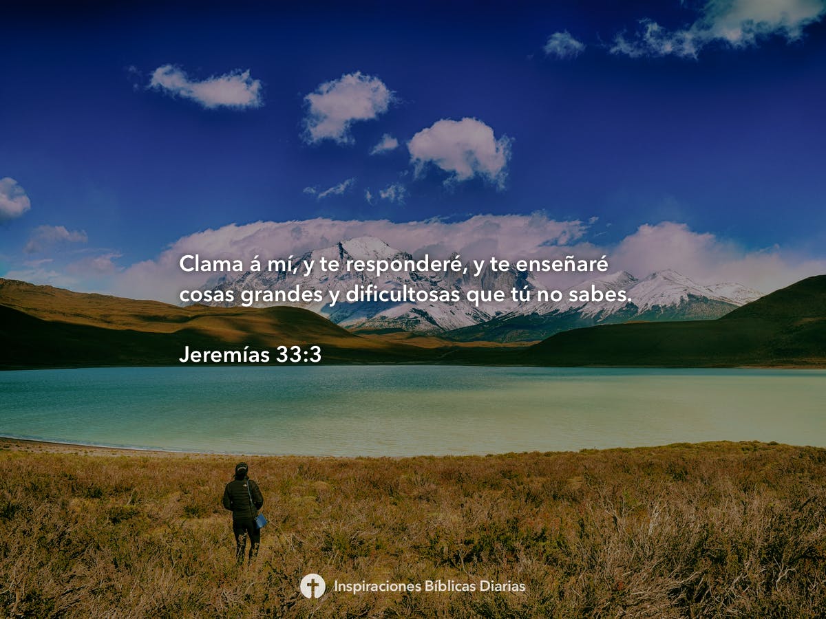 Versículo Jeremías 33:3 Clama a mí, y yo te responderé, y te enseñaré cosas grandes y ocultas que tú no conoces.- Biblia Reina Valera 1960