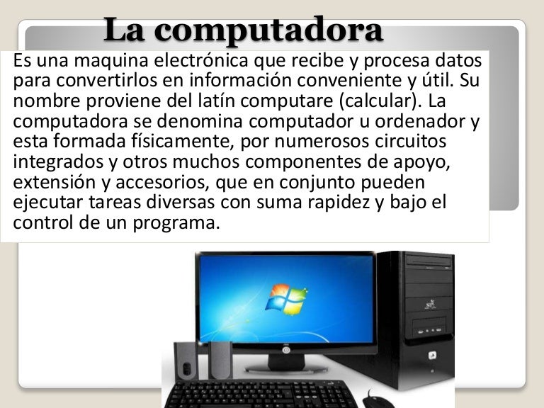 La computadora necesita de una parte material, tangible y visible para funcionar. ¿Qué es computador? El computador, también conocido generalmente como ordenador o computadora, es una compleja máquina que procesa y ejecuta órdenes de diversa índole para dar como resultado un sinfín de tareas distintas.