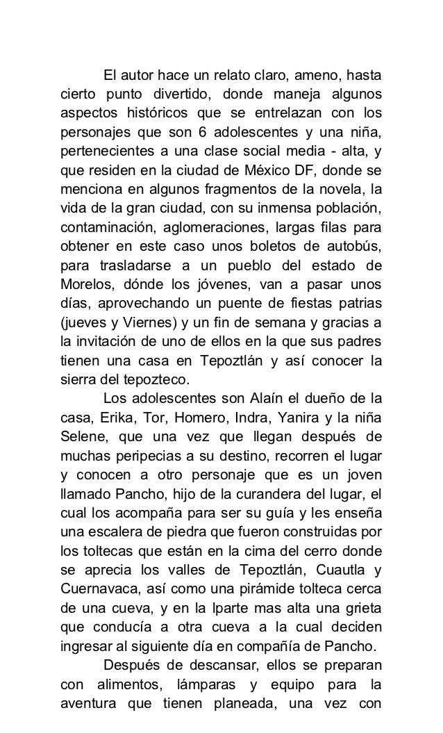 Recomendando libro de "La panza del tepozteco", para impulzar la literatura Mexicana.