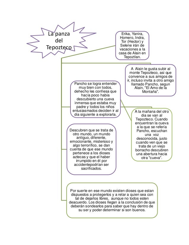 Reseña: La panza del Tepozteco de José Agustín. Sipnosis. Un grupo de adolescentes deciden ir de excursión a Tepoztlán. Cuando llegan al pueblo conocen a Francisco, un muchacho que identifica muy bien cada cueva y cada gruta del cerro del Tepozteco. Él los lleva a un lugar que acaba de descubrir. Juntos emprenden una gran aventura en la.