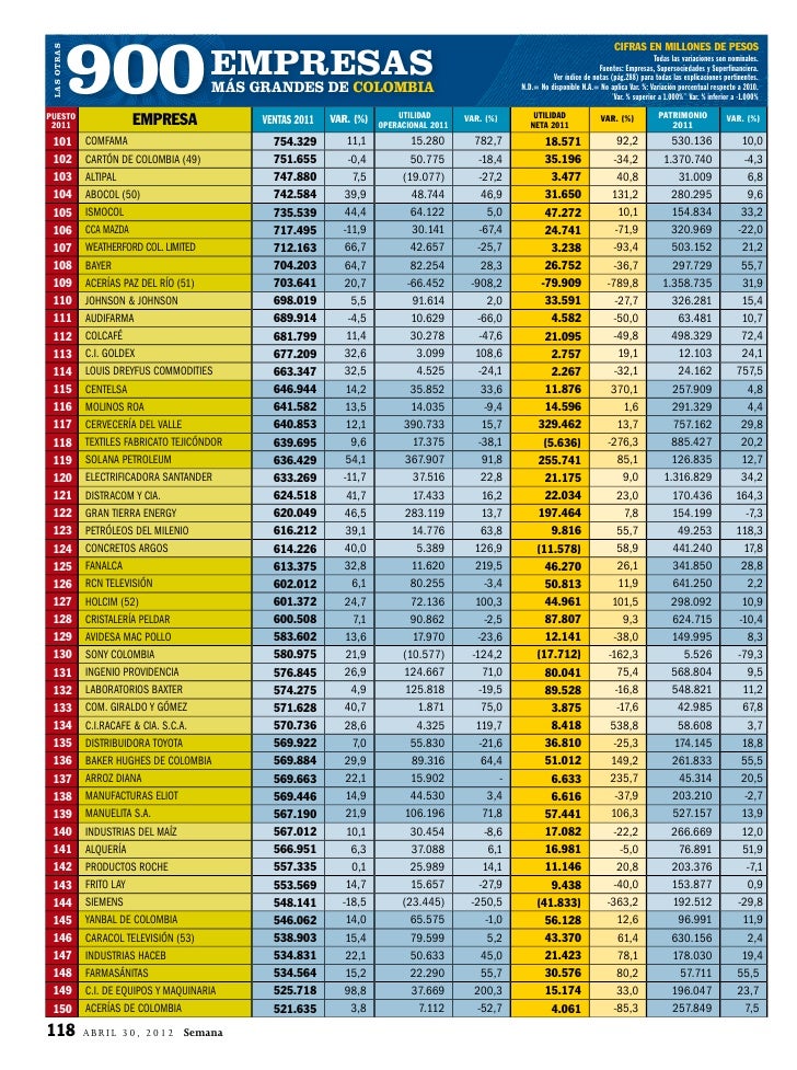 Las 1000 Empresas Mas Grandes de Colombia Business Science