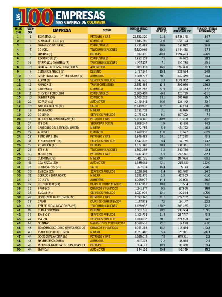 Las 100 empresas mas grandes de colombia