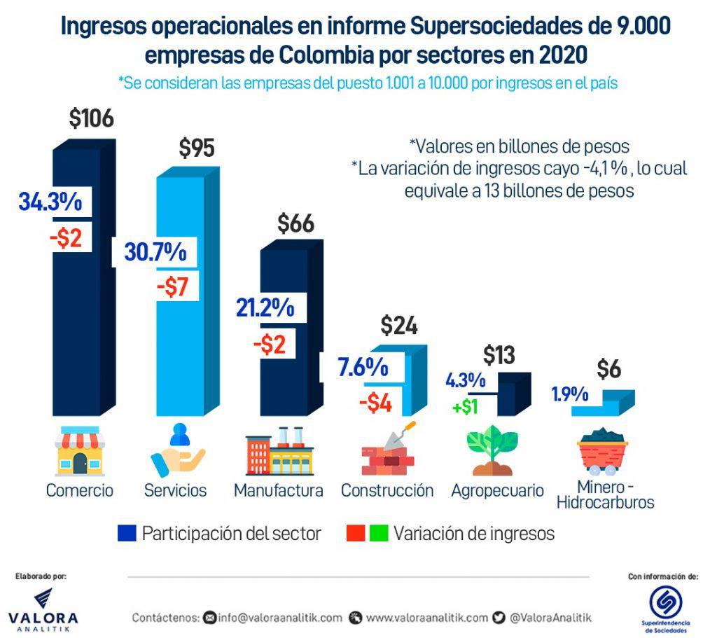 Este jueves 10 de junio, la Superintendencia de Sociedades publicó un informe en el que reportó las pérdidas y ganancias de las 1.000 empresas más grandes del país en 2020, así como el top.