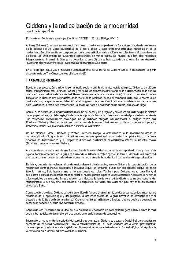 (PDF) Giddens y la radicalización de la modernidad