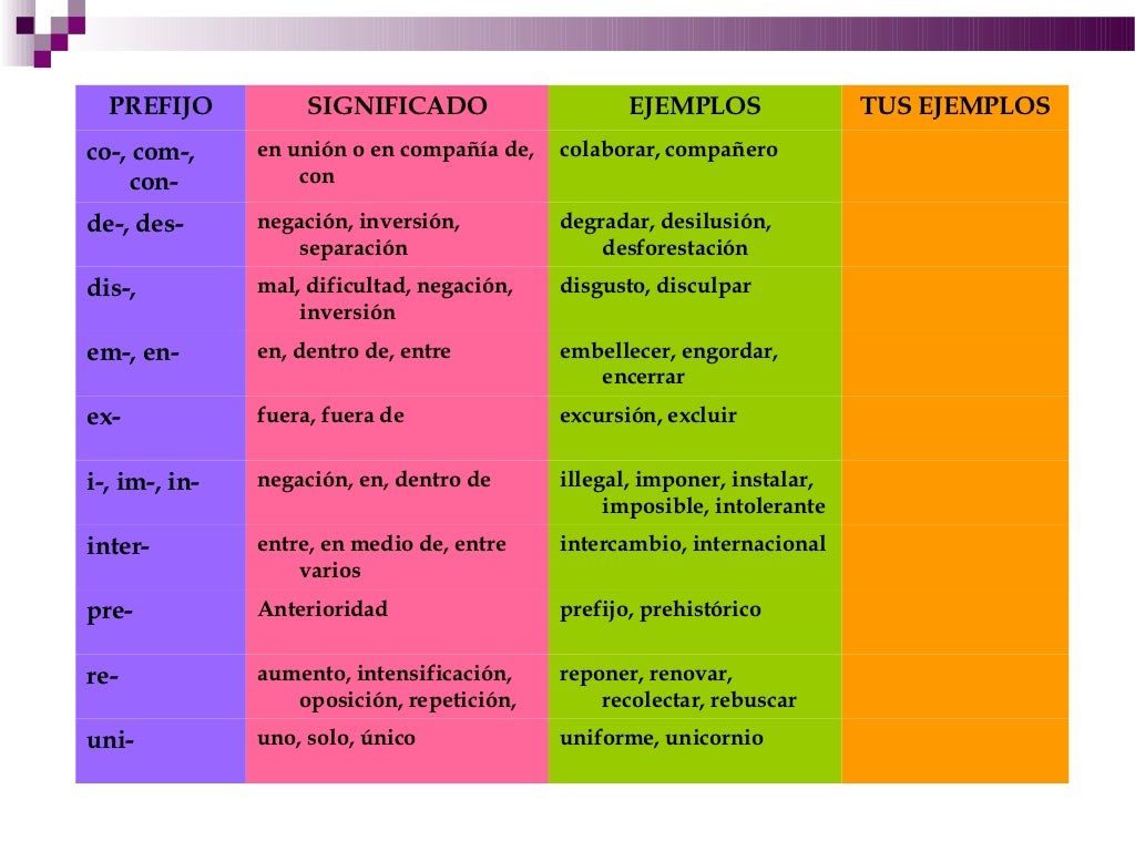10 ejemplos de palabras que tengan prefijos y sufijos Educación Activa
