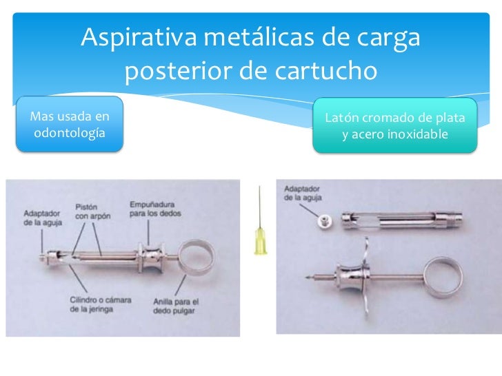 Ahorrar $ 265.00. $ 115.00 MXN $ 380.00 MXN. Jeringa de anestesia tipo Bayer de uso odontológico que ayuda al dentista a aspirar durante la anestesia dental. Este utensilio es fácil de utilizar y reduce la sensación de dolor tanto del especialista dental como del paciente durante la intervención. Carpule Arpon o Flecha.
