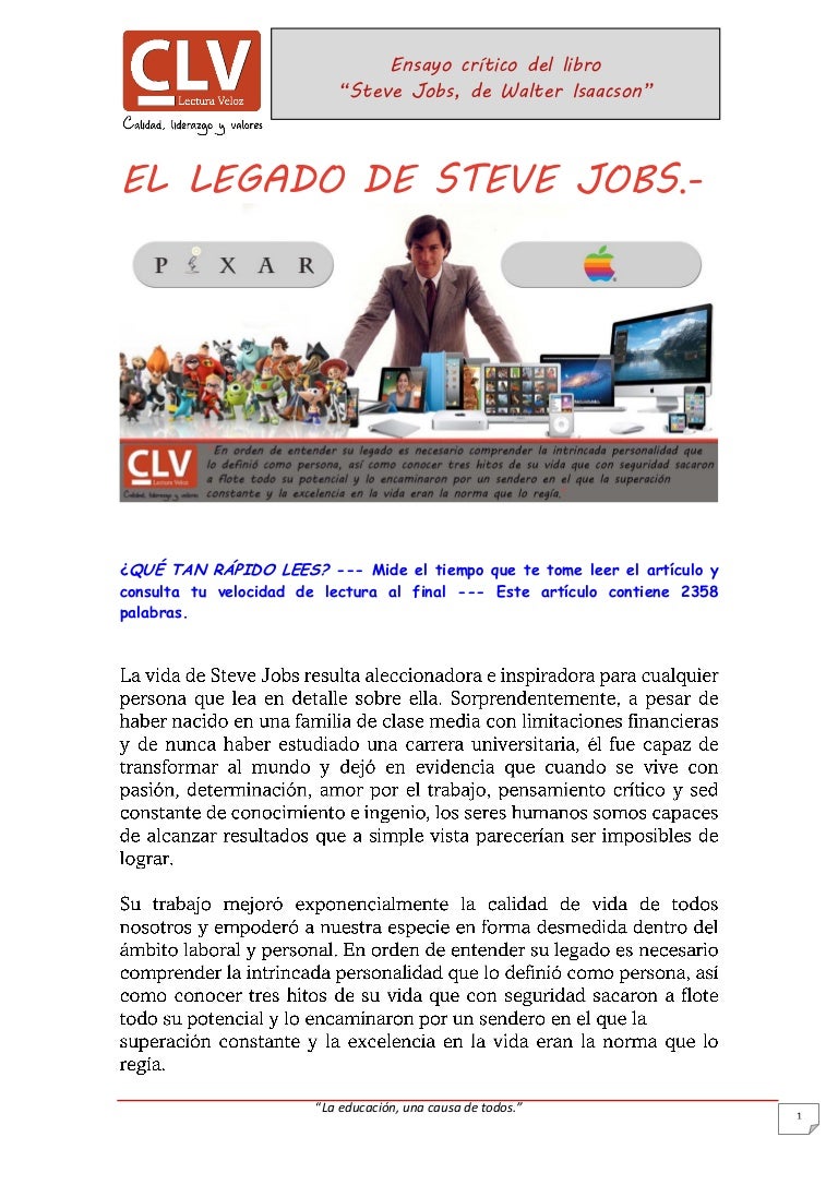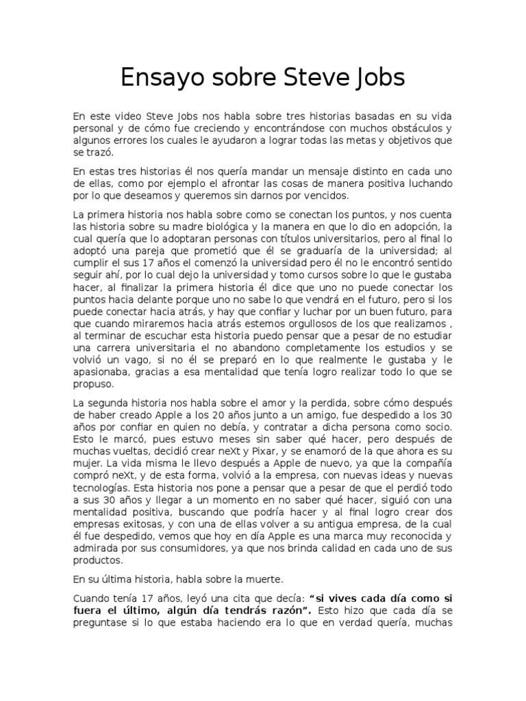 Comparar Leonardoda Vendedor ensayo sobre steve jobs Anfibio Puede soportar Excelente