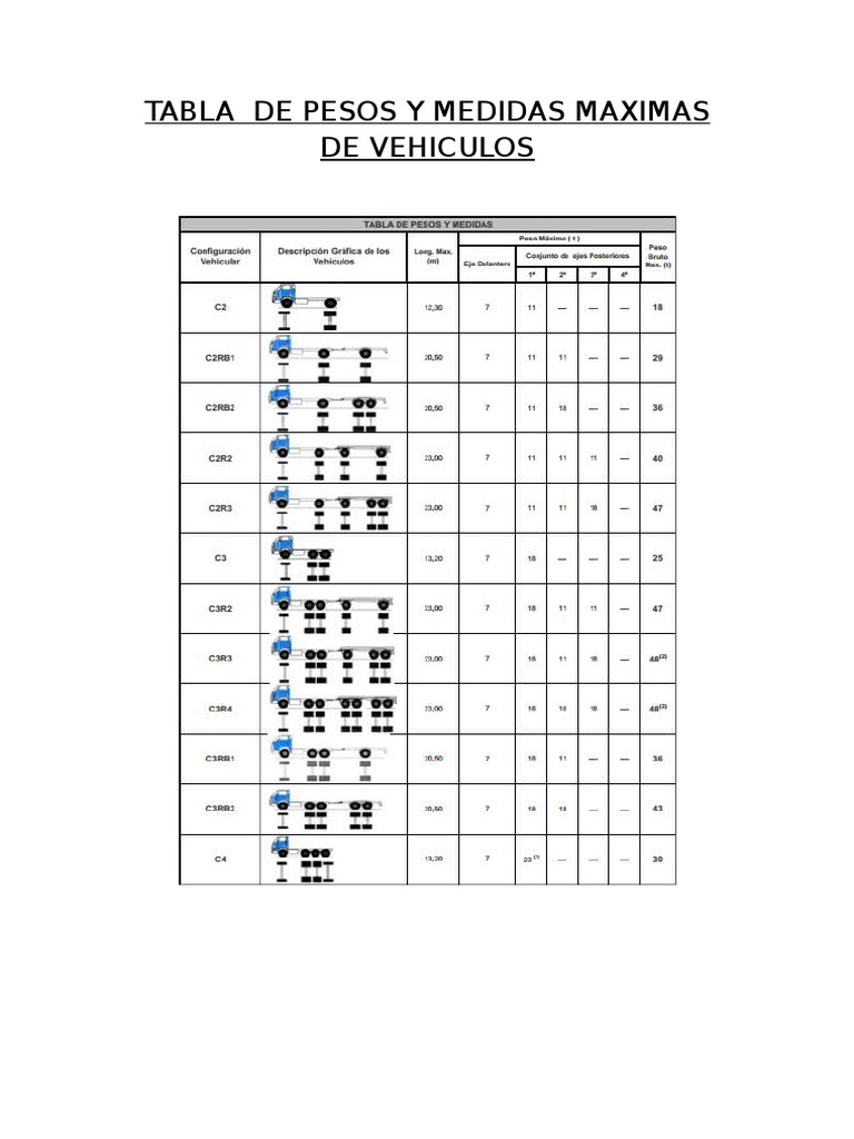 Tabla de Pesos y Medidas Maximas de Vehiculos