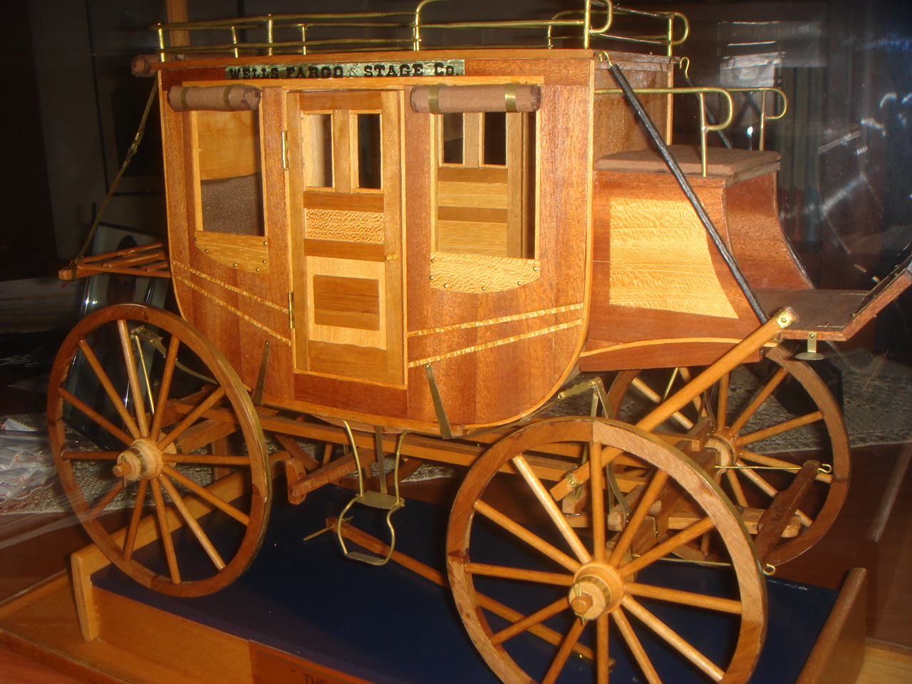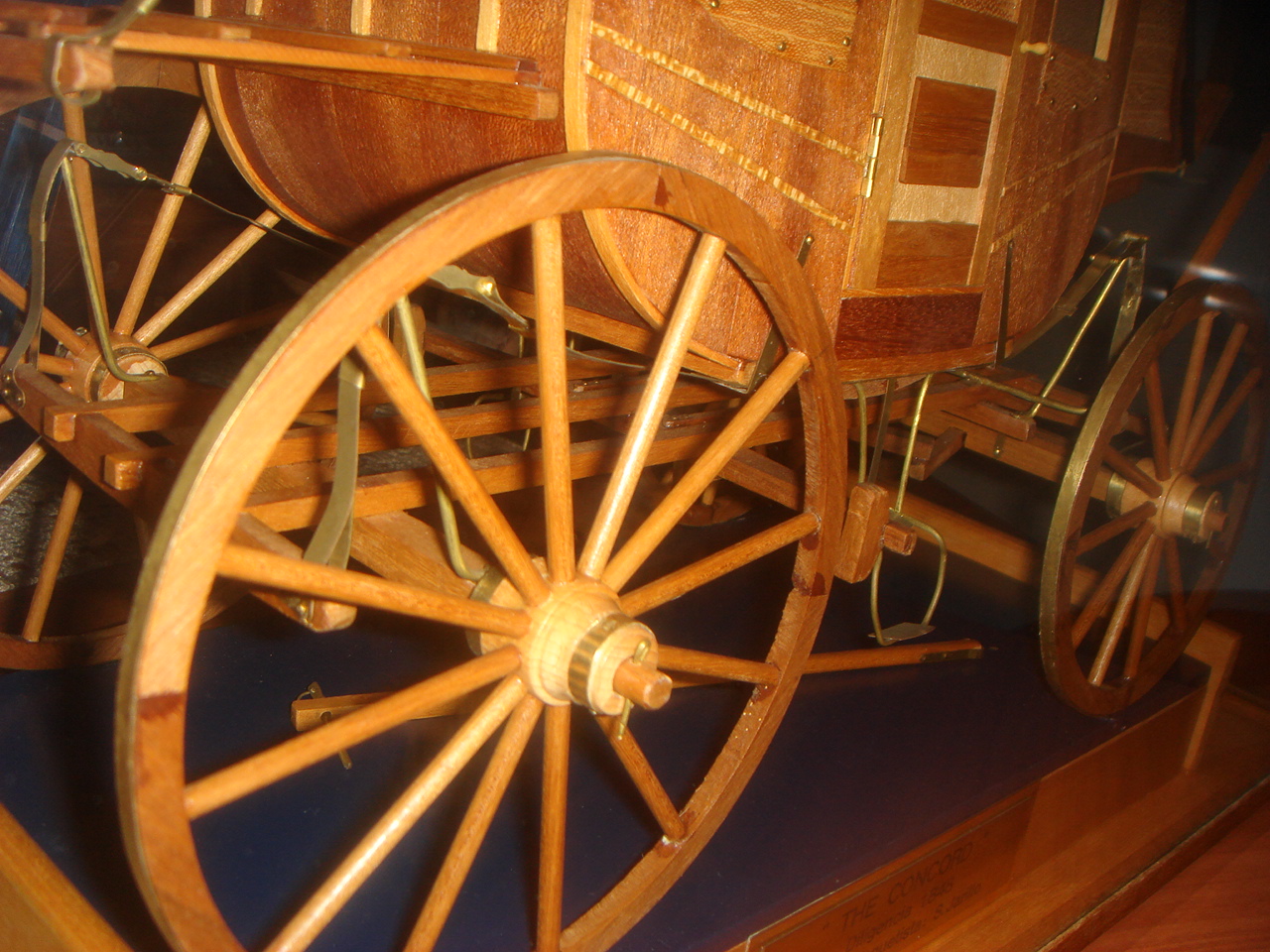 La maqueta de esta diligencia recrea concretamente la llamada "Concorde" de 1848, construida para la famosa compañía Wells Fargo de los Estados Unidos y que la factoría del cine, ha venido utilizando para ambientar las cuantiosas películas del oeste americano que se han rodado durante tanto tiempo. Entre las particularidades de este medio.
