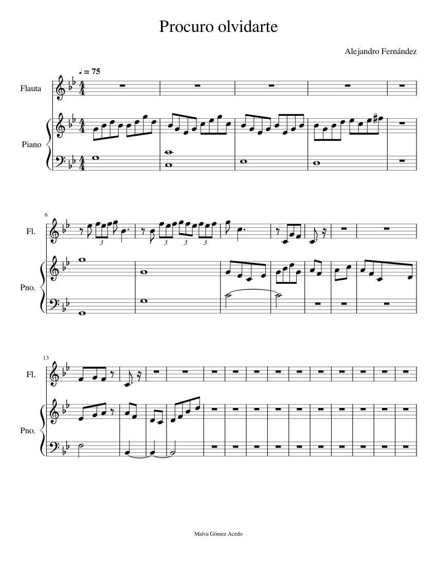 Procuro olvidarte partitura Sheet music for Piano, Flute (PianoVoice)