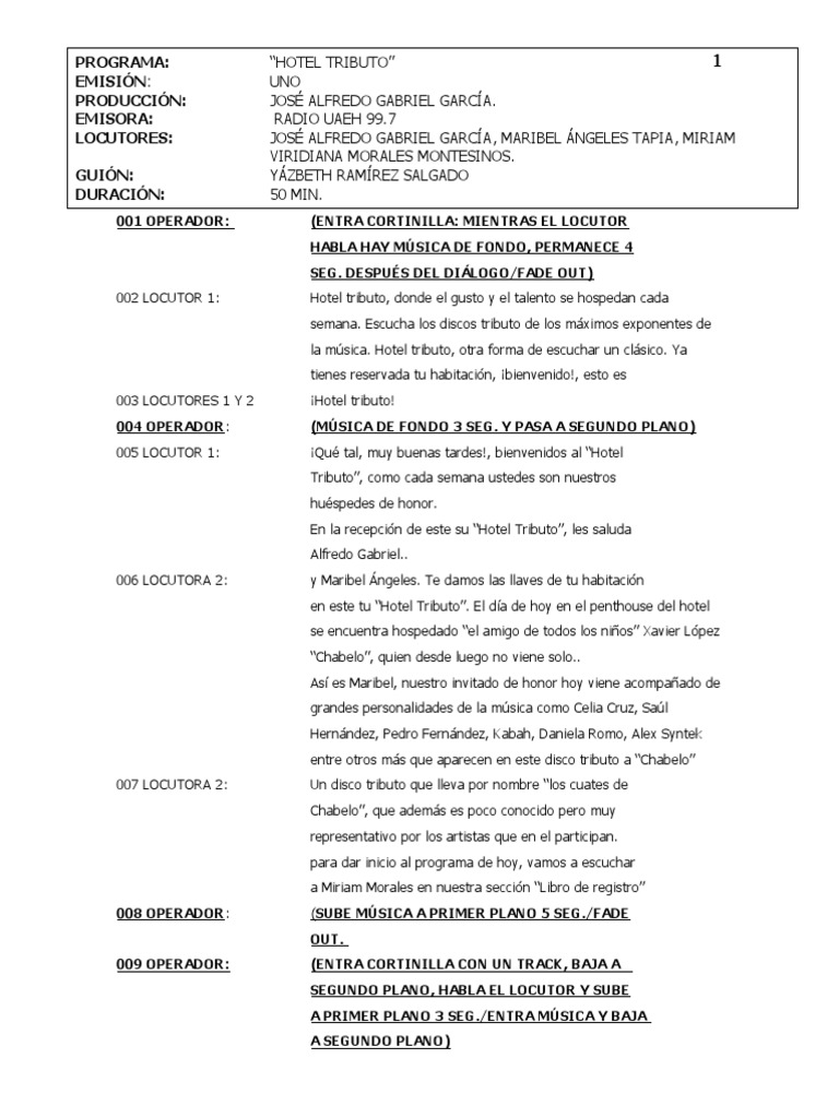 Cuales Son Las Partes De Un Guion De Radio prodesma