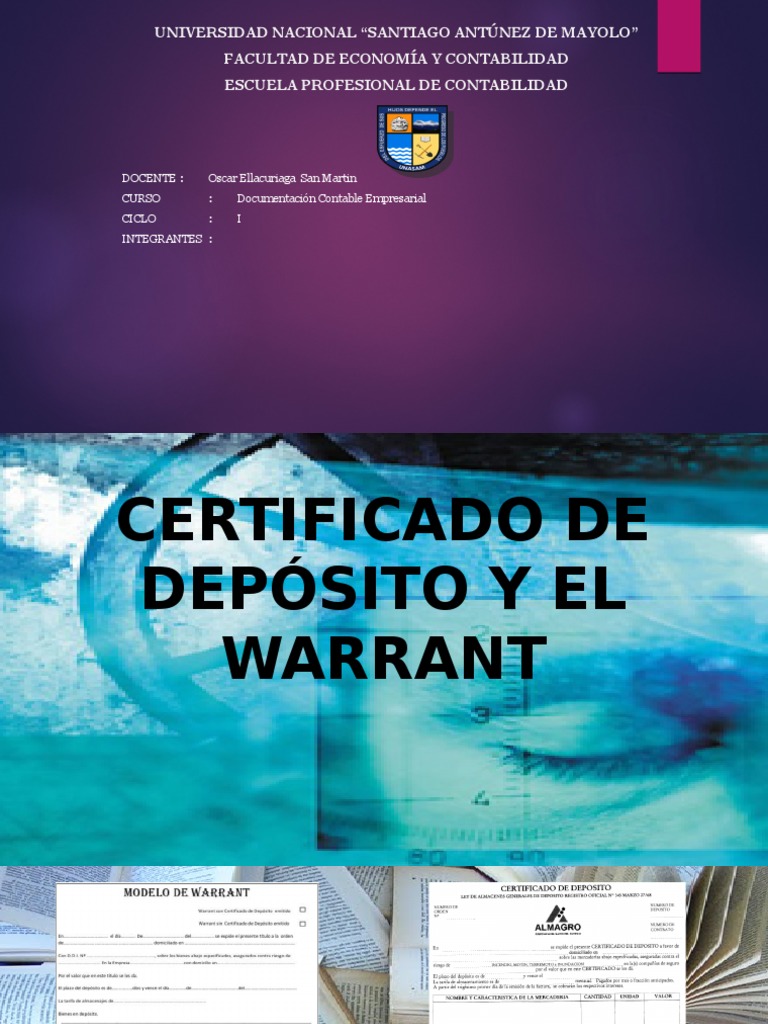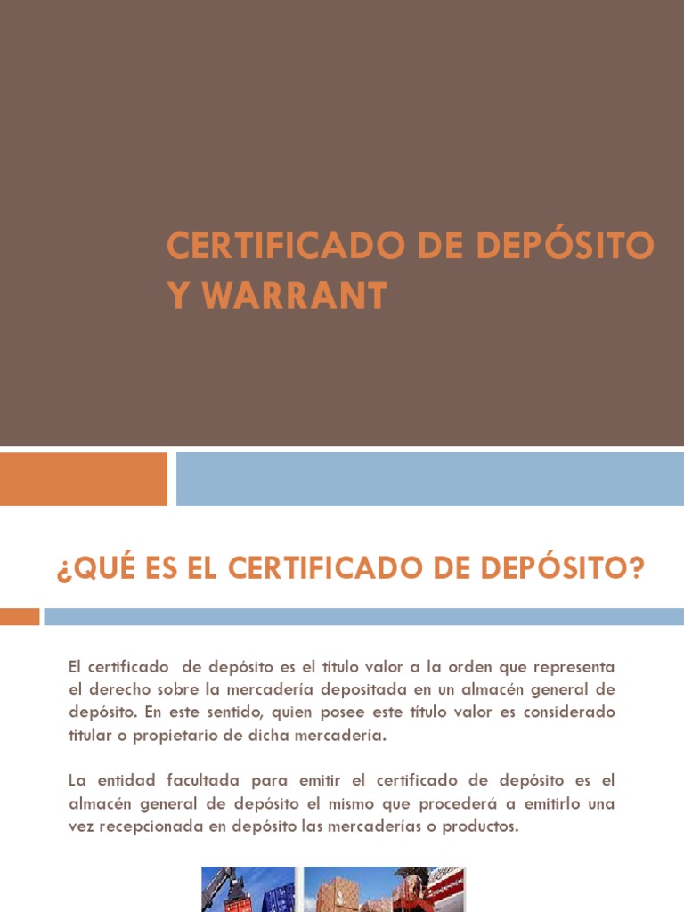 Certificado de Deposito y Warrant Certificado de deposito Finanzas (general) Prueba