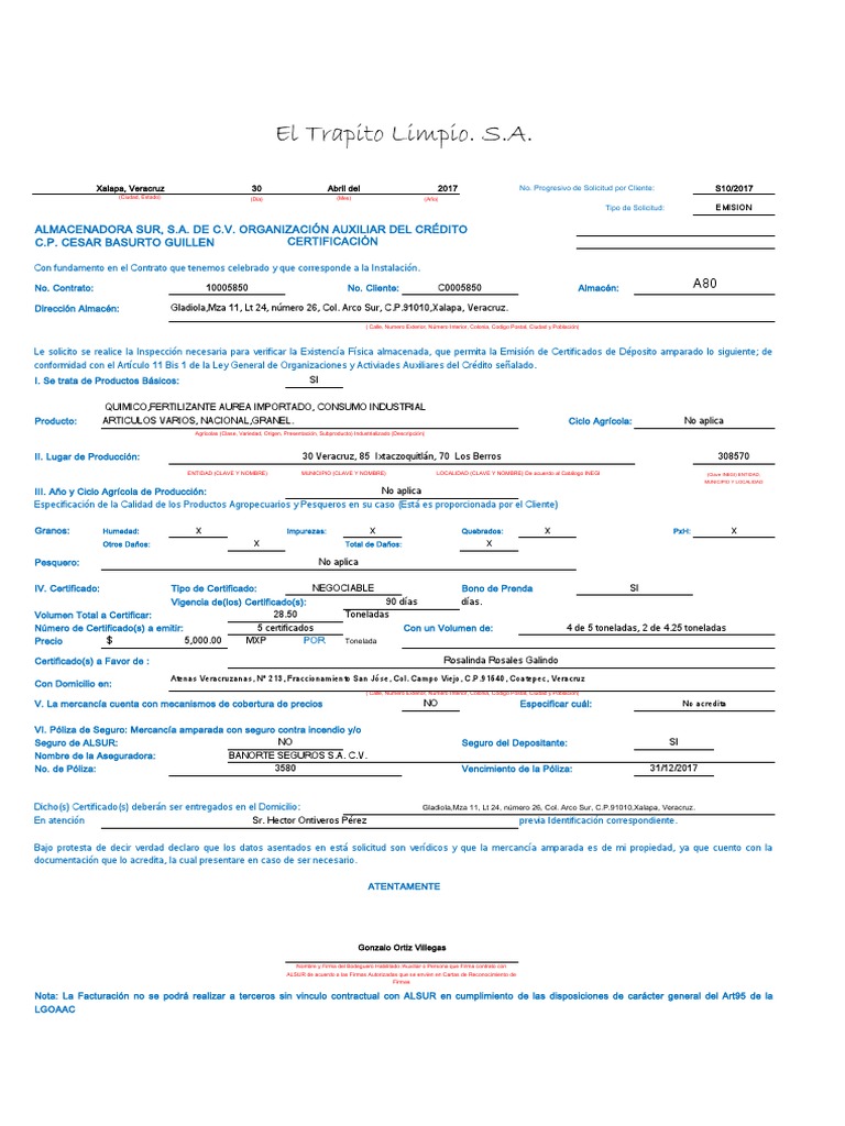 Ejemplo de Certificado de Deposito PDF Póliza de seguros Gobierno