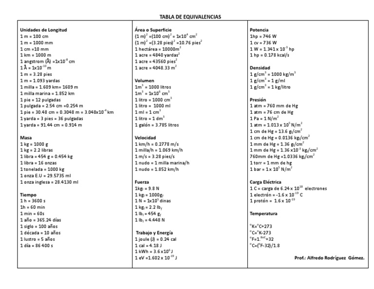 Tabla De Equivalencias De Fisica Pie Unidad Unidades vrogue.co