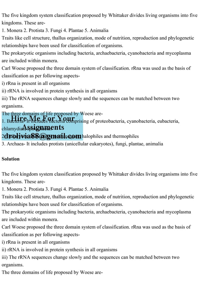 SOLUTION Five kingdom system of classification by r h whittaker Studypool